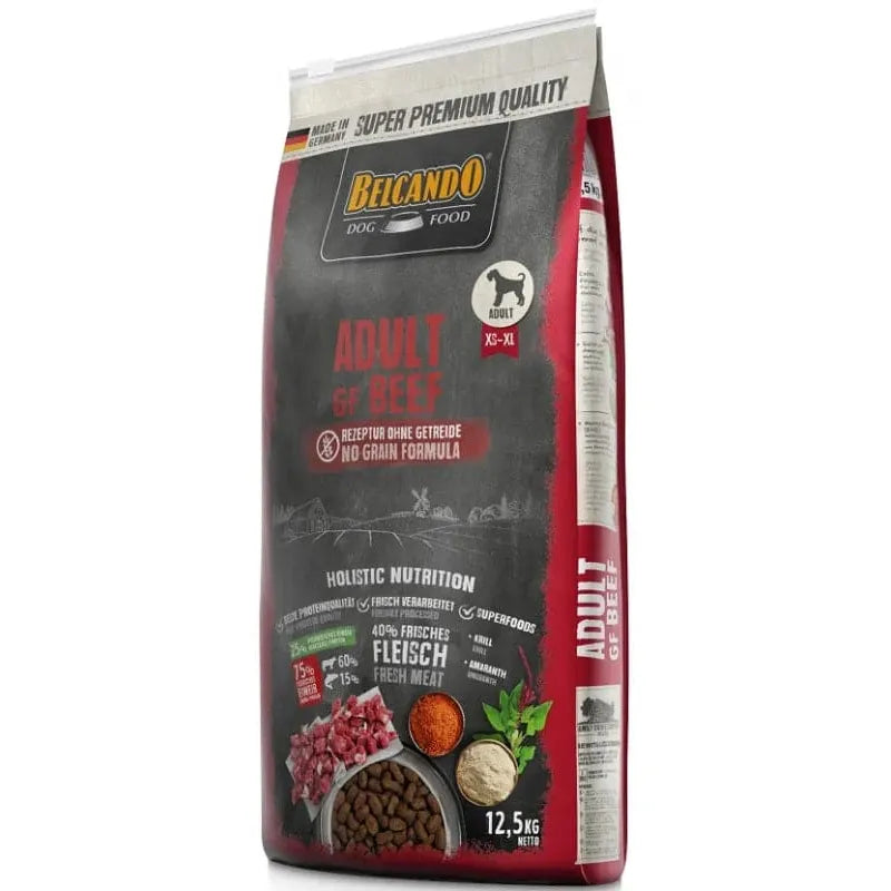 Den ideelle næring til hunde, der er gluten- og kornintolerante, og som foretrækker et alternativ til fjerkræ. I opskriften, der blev udviklet efter et holistisk diætkoncept, erstattes kornet af høj kvalitet amaranth, der har meget højere niveauer af vigtige næringsstoffer (protein, den essentielle aminosyre lysin, umættede fedtsyrer, mineraler, sporstoffer). Den høje andel af frisk kød gør Adult GF okse til en rigtig godbid. Protein- og fedtindholdet tilpasses den voksnes behov.
