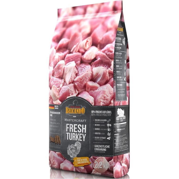 Der bruges kun frisk kød til at lave Belcando Mastercraft. Det indeholder ingen tørret kødmel, som findes i andre højkvalitets tørfoder produkter.