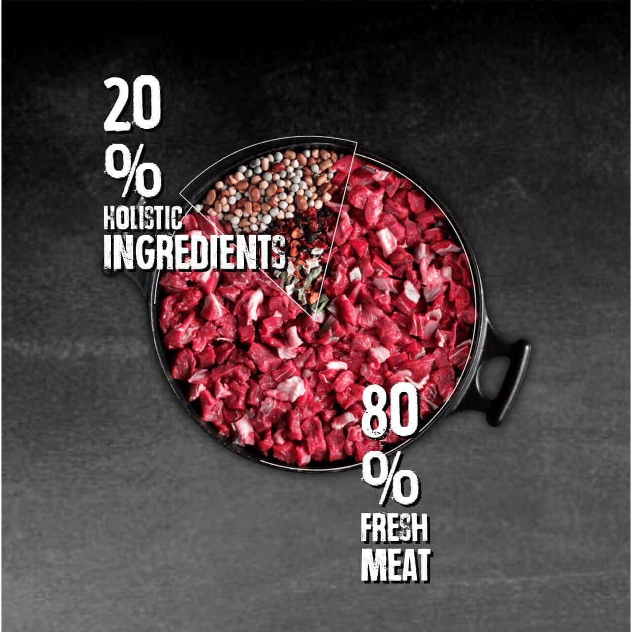 Der bruges kun frisk kød til at lave Belcando Mastercraft. Det indeholder ingen tørret kødmel, som findes i andre højkvalitets tørfoder produkter.