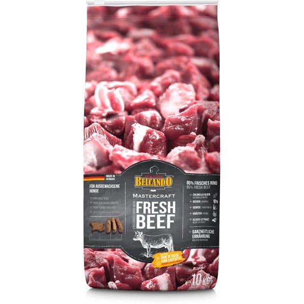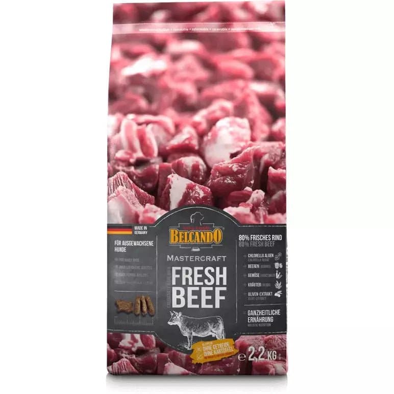 Der bruges kun frisk kød til at lave Belcando Mastercraft. Det indeholder ingen tørret kødmel, som findes i andre højkvalitets tørfoder produkter.